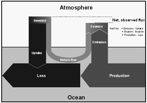 The distribution, flux, and lifetime of numerous atmospheric trace gases are affected significantly by the chemistry and biology of the ocean. This is readily apparent with gases that undergo reactions in the marine boundary layer, but it also is true for some of the longer-lived gases that have been implicated in stratospheric ozone depletion and global warming.